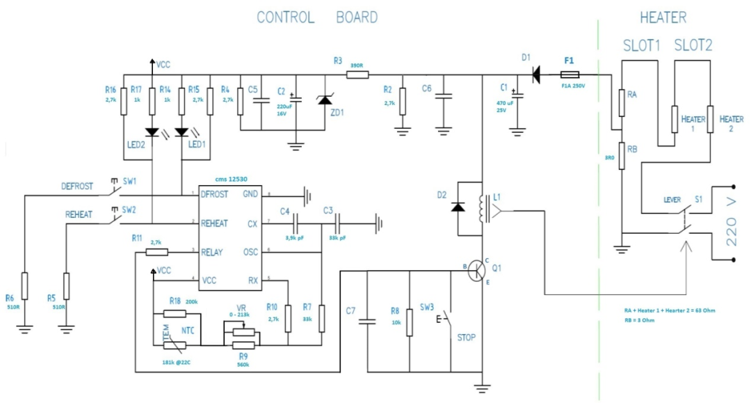 圖1  多士爐電氣原理圖