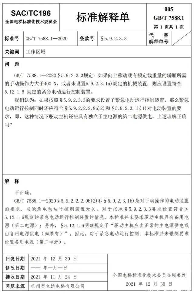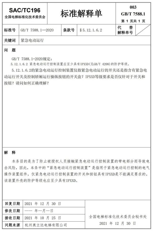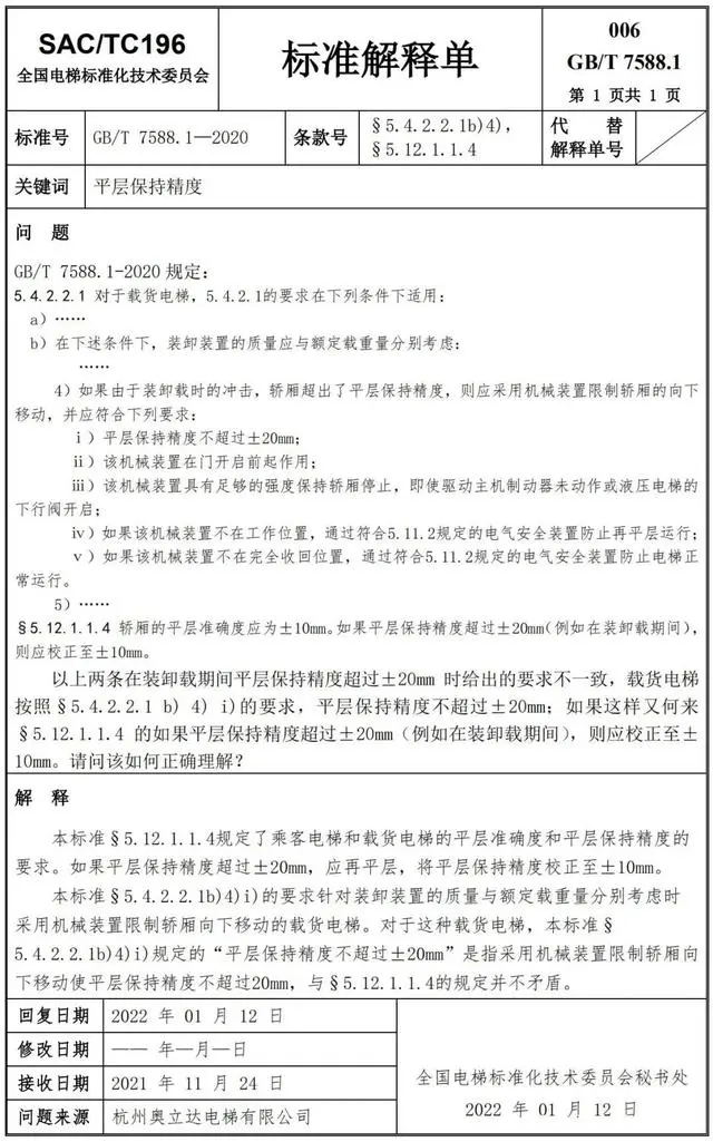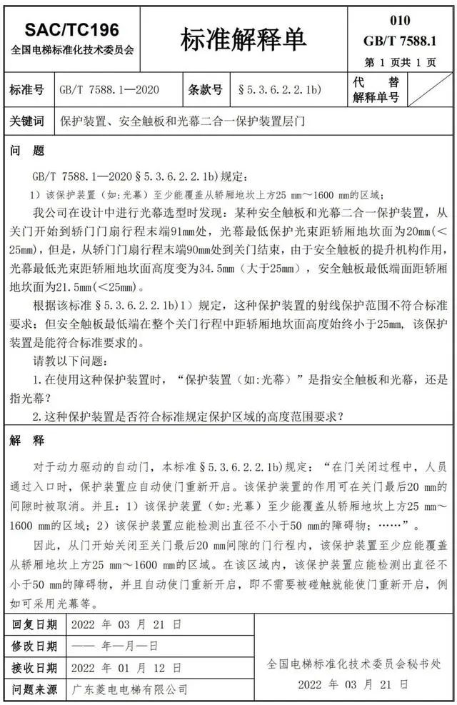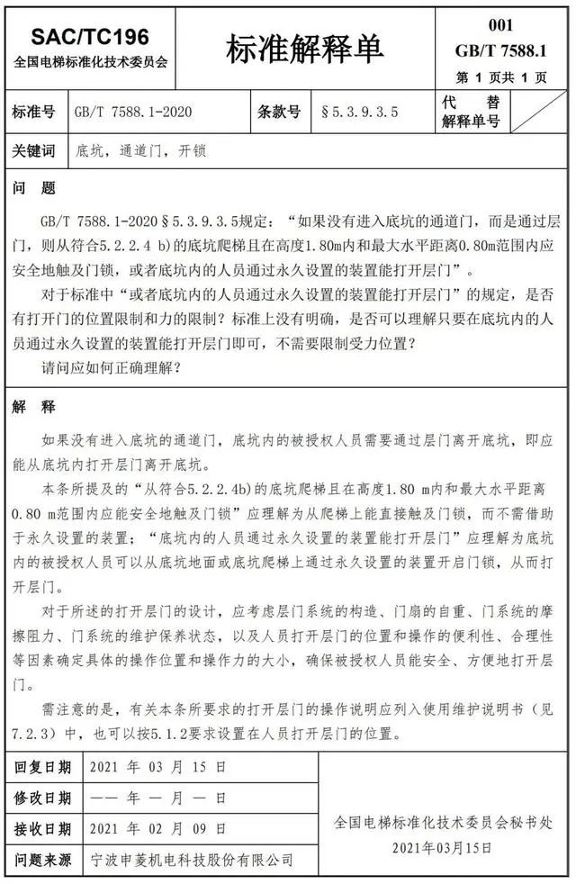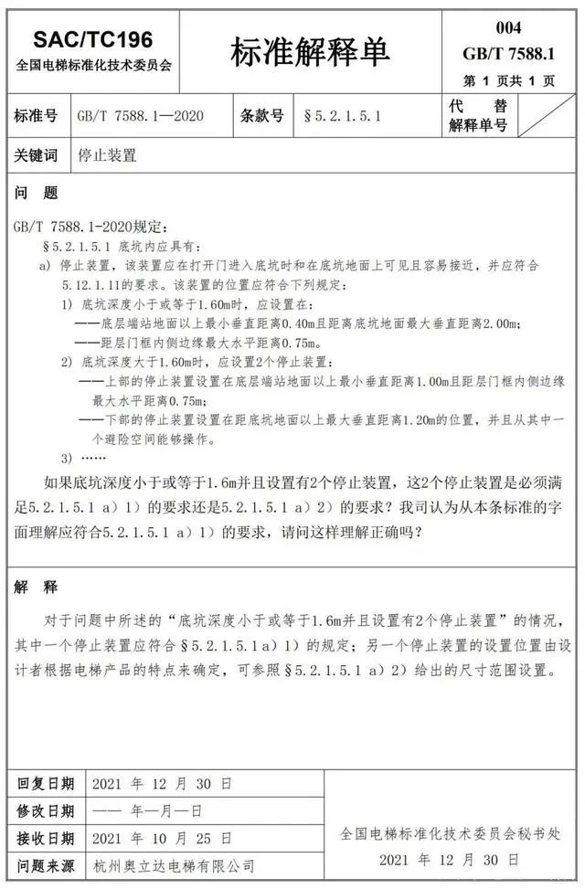 Delta德爾塔儀器小編了解到,GB/T 7588.1—2020《電梯制造與安裝安全規(guī)范 第1部分:乘客電梯和載貨電梯》已經(jīng)于2022年7月1日實(shí)施。截止到2022年3月21日,全國電梯標(biāo)準(zhǔn)化技術(shù)委員會(huì)相繼發(fā)布了GB/T 7588.1—2020《電梯制造與安裝安全規(guī)范 第1部分:乘客電梯和載貨電梯》第1-10號(hào)標(biāo)準(zhǔn)解釋單。