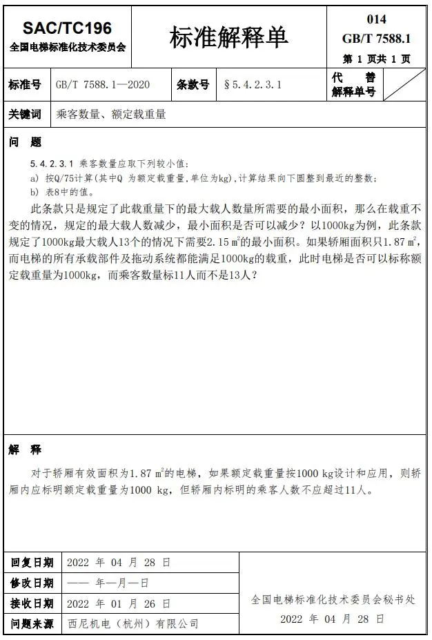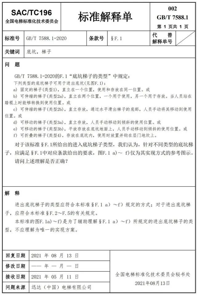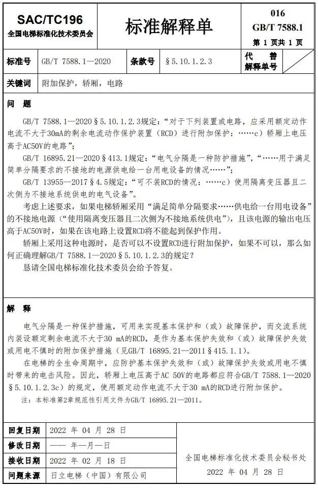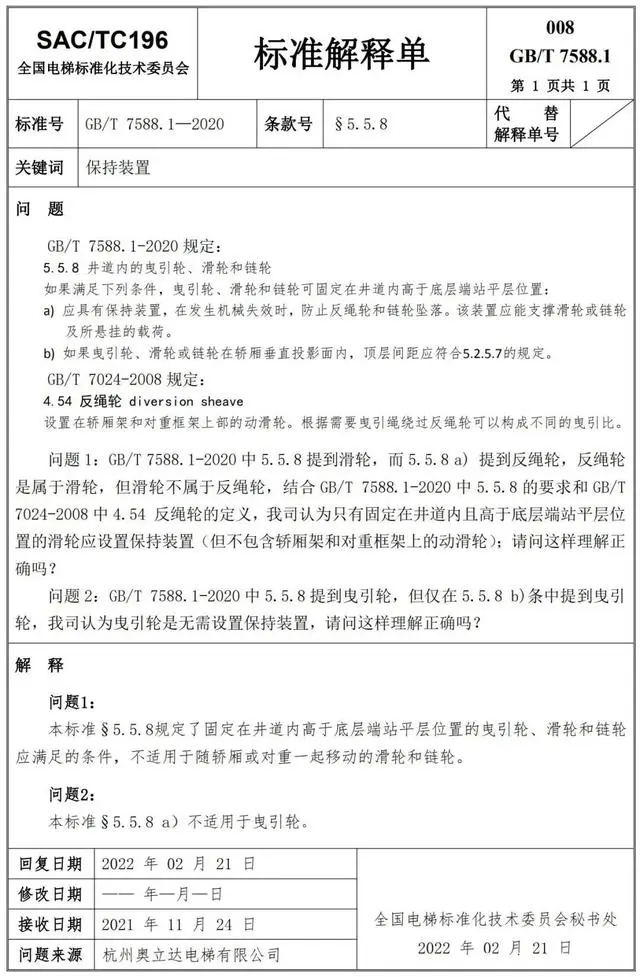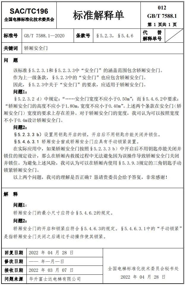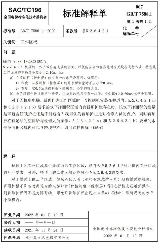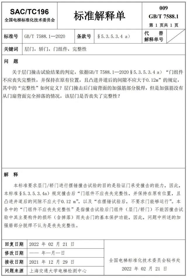 Delta德爾塔儀器小編了解到,GB/T 7588.1—2020《電梯制造與安裝安全規(guī)范 第1部分:乘客電梯和載貨電梯》已經(jīng)于2022年7月1日實(shí)施。截止到2022年3月21日,全國電梯標(biāo)準(zhǔn)化技術(shù)委員會(huì)相繼發(fā)布了GB/T 7588.1—2020《電梯制造與安裝安全規(guī)范 第1部分:乘客電梯和載貨電梯》第1-10號(hào)標(biāo)準(zhǔn)解釋單。