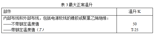 11.8 試驗期間要連續(xù)監(jiān)測溫升,溫升值不得超過表3中所示的值。