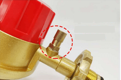 家用調壓器出口為軟管接頭“寶塔頭”時,應選擇有過流切斷安全裝置的產品(下圖分別為進口側和出口側帶過流切斷安全裝置)。