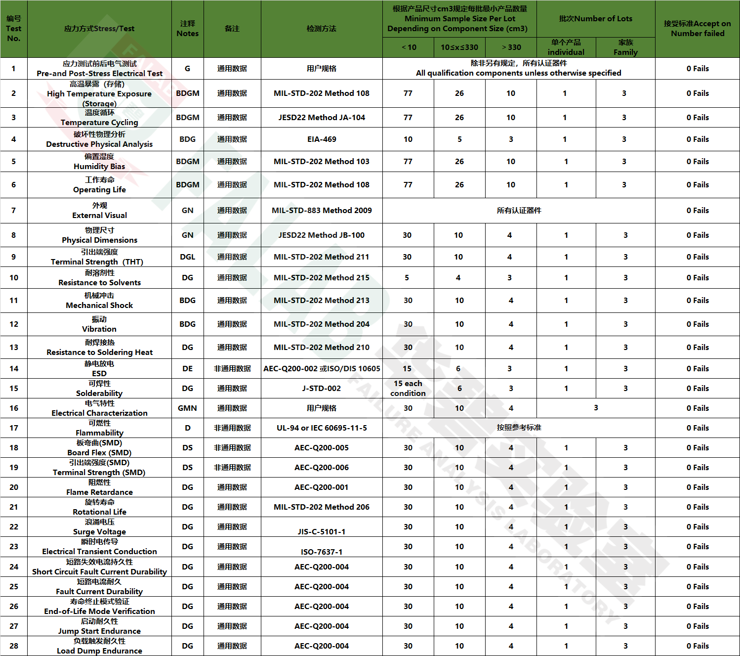 二、根據(jù)產(chǎn)品尺寸重新定義測試樣品數(shù)量,新標(biāo)準(zhǔn)按照<10cm3、10cm3≤x≤330cm3、>330cm3三種規(guī)格確認(rèn)測試樣品數(shù)量,尺寸越大需要的樣品數(shù)量越少,以溫度循環(huán)為例,產(chǎn)品規(guī)格<10cm3需要77個(gè)樣品,產(chǎn)品規(guī)格10cm3≤x≤330cm3需要26個(gè)樣品,產(chǎn)品規(guī)格>330cm3僅需要10個(gè)樣品。