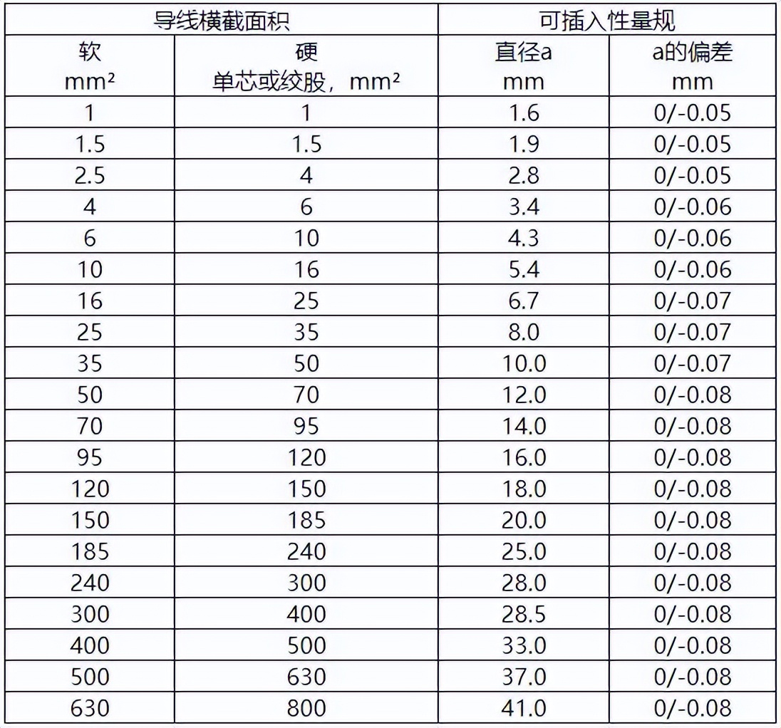 表 1 導(dǎo)體的最大橫截面積與對(duì)應(yīng)的量規(guī)規(guī)格