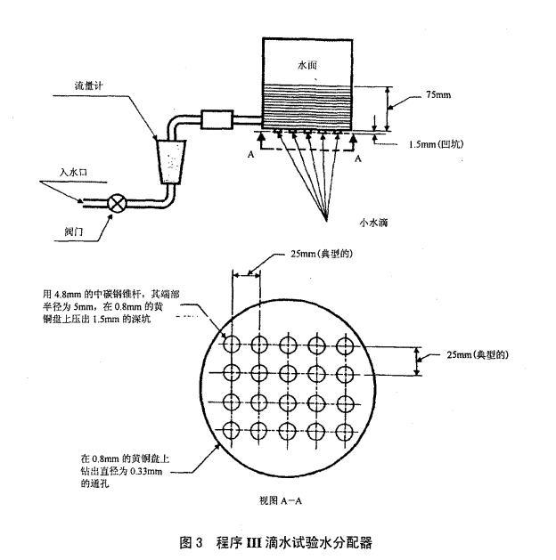 程序3—— 滴水:使試件工作,并使其以均勻速率承受規(guī)定高度不小于1m 的降雨15min。
