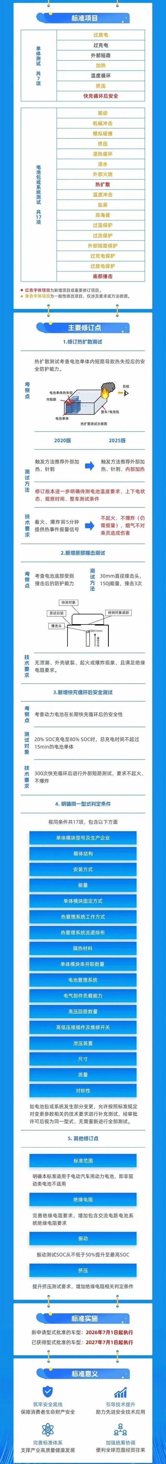 熱擴(kuò)散測試要求不起火、不爆炸,電動汽車電池新國標(biāo)GB38031-2025將于2026年7月實施