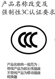 4.產(chǎn)品名稱改變及強(qiáng)制性3C認(rèn)證要求:產(chǎn)品名稱統(tǒng)一規(guī)范為帶線產(chǎn)品為延長線插座,不帶線產(chǎn)品為移動(dòng)插座轉(zhuǎn)換器。