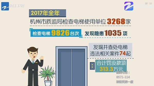 杭州市特種設(shè)備應(yīng)急處置中心主任張文:“去年我們2016年榜的十大(電梯故障高發(fā))小區(qū)跟今年相比,故障率下降了16.75%,應(yīng)該說(shuō)成效還是比較明顯?!?/p>