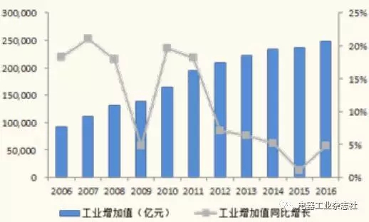 2006年到2016年中國(guó)工業(yè)增加值變化
