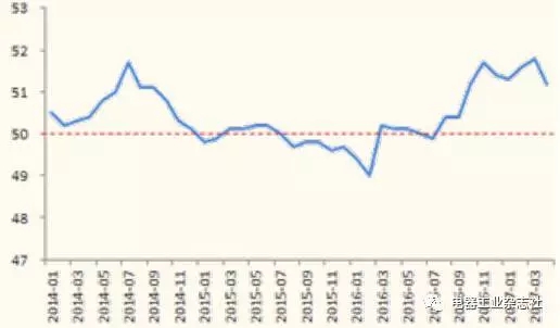 工業(yè)領(lǐng)域是低壓電器中高端產(chǎn)品使用最為廣泛也是最為重要的領(lǐng)域之一。我國(guó)工業(yè)一直保持了一個(gè)非常好的發(fā)展勢(shì)頭。2016年我國(guó)工業(yè)增加值達(dá)到24.8萬億,是2006年工業(yè)增加值的269%,可謂增長(zhǎng)迅速。2016年8月份以來,反應(yīng)制造業(yè)景氣指數(shù)的PMI指數(shù)已經(jīng)連續(xù)9個(gè)月站在榮枯線50以上。反映了我國(guó)工業(yè)制造業(yè)有加速回暖的趨勢(shì),工業(yè)領(lǐng)域回暖,會(huì)帶動(dòng)工業(yè)企業(yè)固定資產(chǎn)投資增速,利好配電和終端電器。