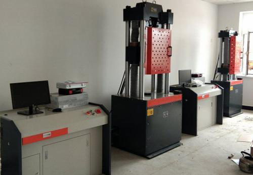 8.力學室,主要有300 T、200 T 、150 T 、100 T 、80 T 、50 T、20 T 、10T、5T、2 T、1 T、0.5 T各種量程和精度的全自動微機控制萬能材料試驗機、拉力試驗機、鋼筋彎曲機等主要儀器設(shè)備,可以完成屈服強度、抗拉強度、斷后伸長率、彎曲性能、表面質(zhì)量、重量偏差、屈強比等試驗。