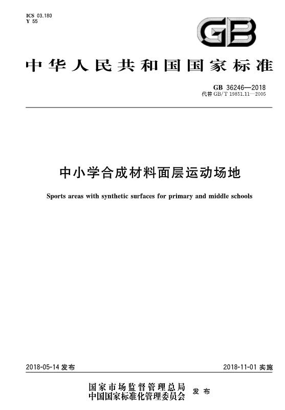 GB 36246-2018《中小學(xué)合成材料面層運(yùn)動場地》,已于2018年11月1日開始實(shí)施。