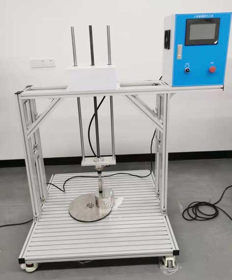 本設(shè)備符合GB9706.1-2020(IEC60601-1-2012)中15.4.7.1條及YY1057-2016醫(yī)用腳踏開關(guān)通用技術(shù)條件第5.1.3.1項標(biāo)準(zhǔn)要求中對腳踏控制裝置施加1350N的作用力達(dá)1min,來檢驗是否符合來自人體重量的靜載荷條款要求;用于腳踏開關(guān)加載力試驗;需采用電機(jī)++絲桿+力傳感器加載方式,力值數(shù)顯。力傳感器與壓板之間加一個萬向關(guān)節(jié)連接。