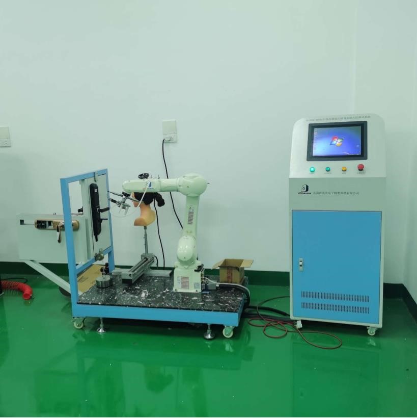 1、利用進(jìn)口超靜音伺服電機(jī)作為傳動(dòng)動(dòng)力源,采用六軸機(jī)器人多維度運(yùn)轉(zhuǎn),可真實(shí)的模擬人的手臂、手指進(jìn)行的開(kāi)關(guān)門(mén)動(dòng)作;